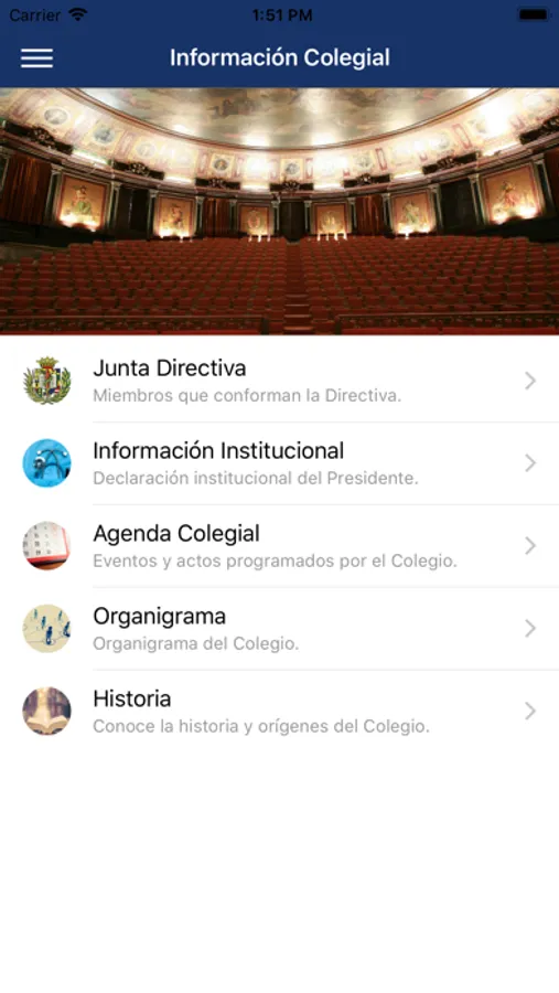 - Agenda Colegial: eventos y actos programados por el colegio.