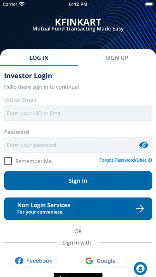 KFinKart - Investor Mutual Funds is your one-touch login that powers you to invest across a host of mutual funds. Get a single view of your investments, manage profile, make decisions and transact instantly without needing multiple apps. Managing your investment journey in Mutual Funds is at the core of this app by KFintech. Now, open up to a refreshingly new way of investing your money.
