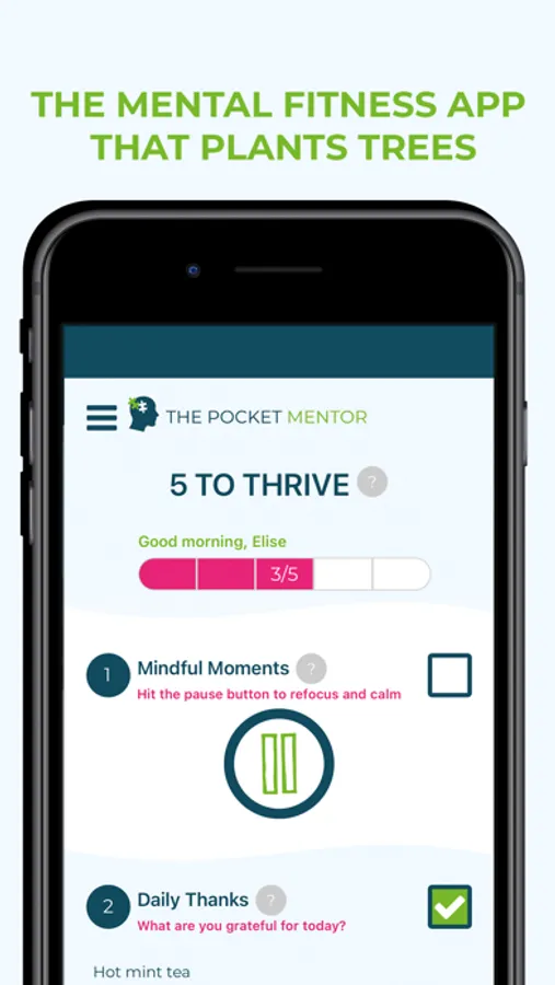 Use The Mind mind area to view all of your 5 To Thrive inputs and your tree tracker to see how your daily actions are making positive change to you and our planet.