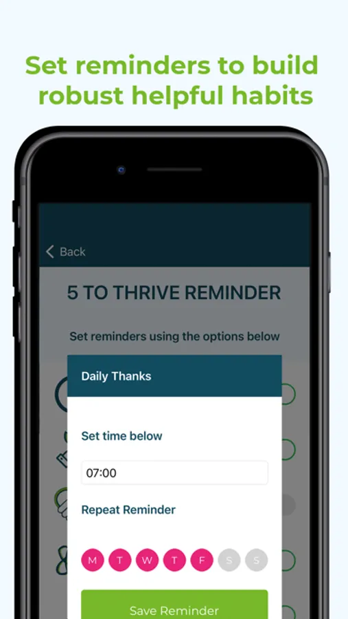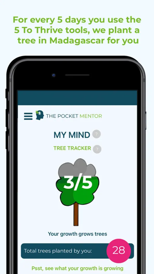 Once you’ve completed the 5 To Thrive mental wellbeing tools, select an emoji that sums up your day. For every 5 days you complete the 5 To Thrive mental wellbeing tools, we donate to plant a tree for you. Your growth grows trees!