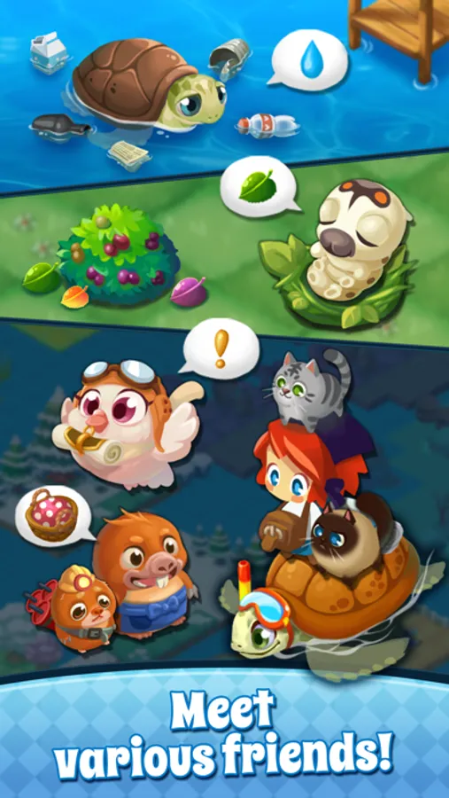 Enjoy a relaxing Tile match puzzle and recover your own miniature garden every day with countless buildings and new pets.