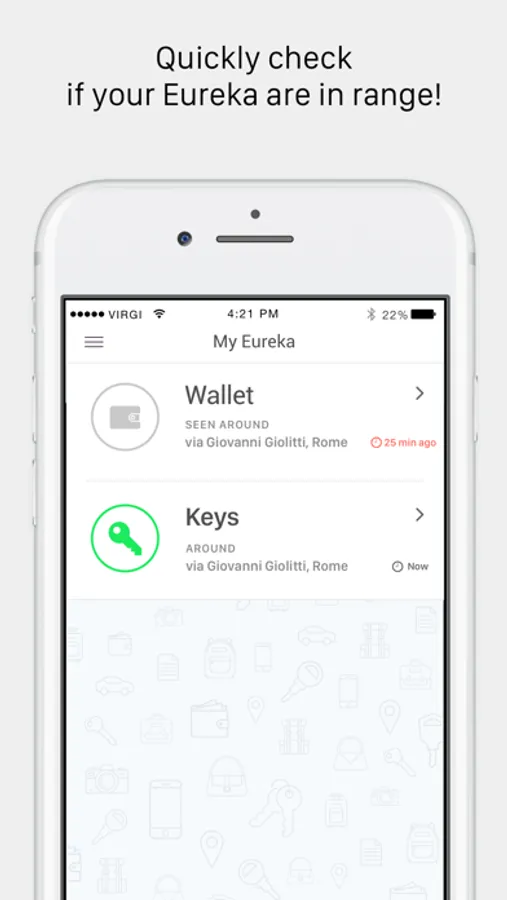 Attach Eureka to your keys, wallet, bag, leave it into your car or motorbike and retrieve it quickly.