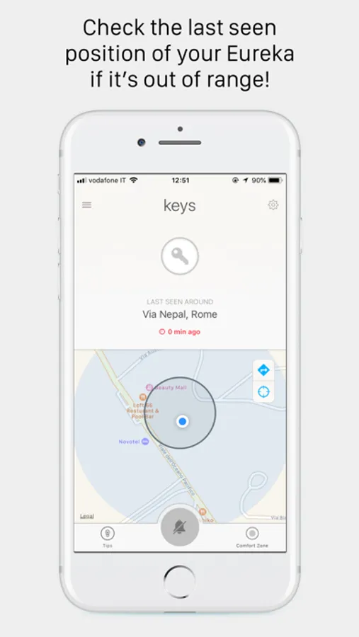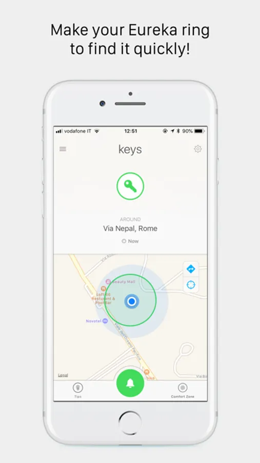 Can't find your valuables? Check their last seen position on the App. With Eureka you'll be able to retrieve your smartphone quickly. How? Just press Eureka's button to make your iPhone ring even if it is on silent mode.