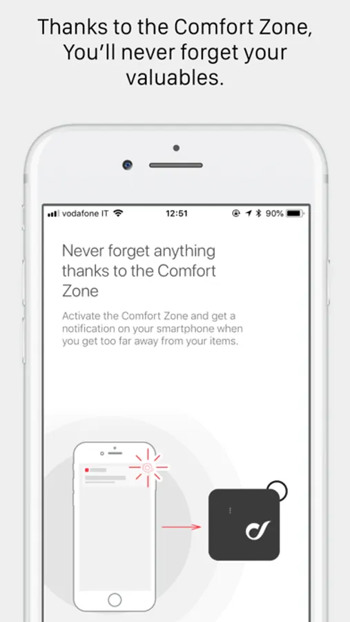 Activate the Comfort Zone and receive a notification before you leave your valuables behind.