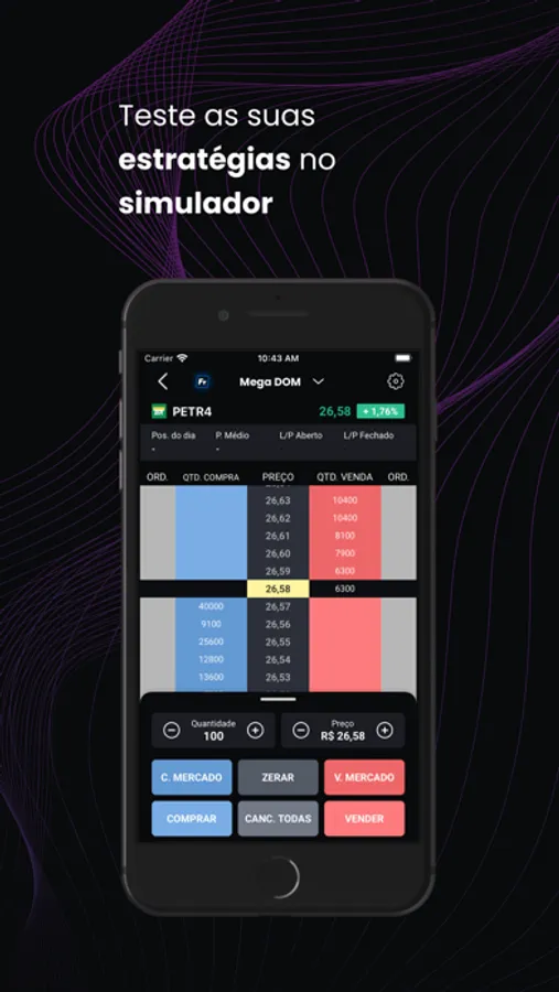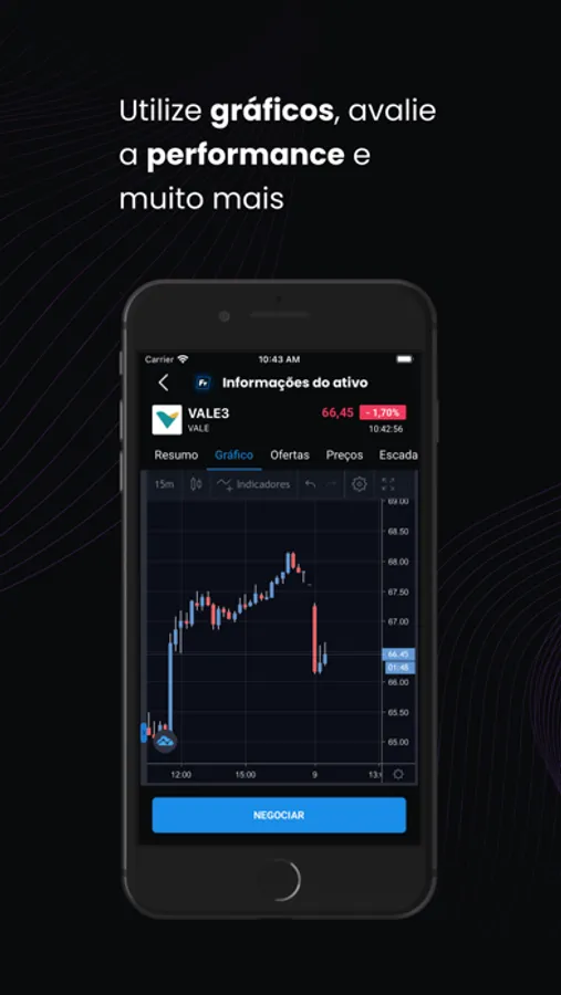 Além de acessar os produtos de investimento disponíveis, o aplicativo para dispositivos móveis permite operar ações, contratos futuros, gerenciar posições em ativos, abrir gráficos, indicadores e muito mais.