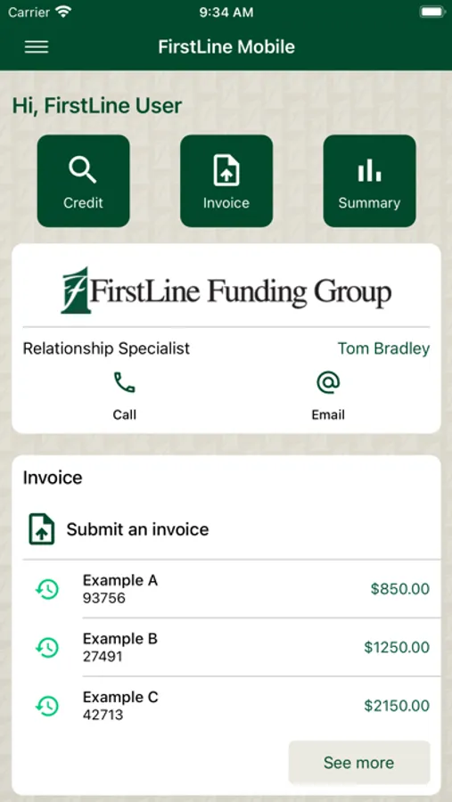 This app is for FirstLine Funding Group clients. Clients are able to check credit on shippers and freight brokers, while also being able to request fuel advances and send invoices.