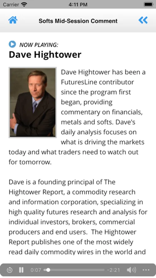 Linn Mobile also features Written and Audio analysis on grains, meats, metals, and energy specialists. Plus, access the latest market news, government reports, and weather; and get the inside scoop from seasoned market professionals — all in one self-contained mobile app.