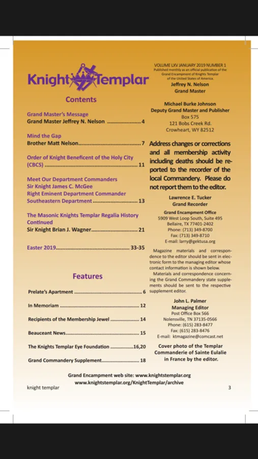 The Editor of Knight Templar would like to publicly thank the Sir Knights who contributed copies of the Knight Templar magazine from their private collections or who volunteered to do so in order to help us make every issue of the magazine available on-line for our posterity. These knights were willing to sacrifice their personal collections for the good of us all and the Templar legacy - Truly chivalrous! --Editor