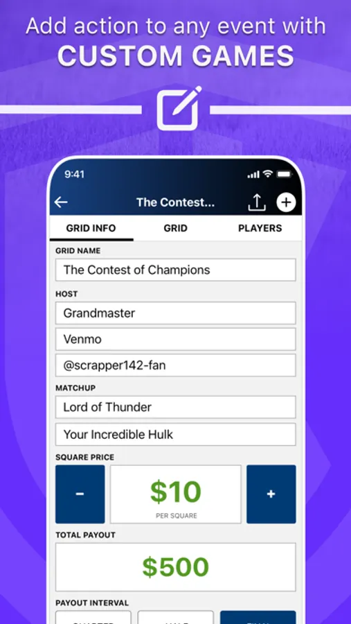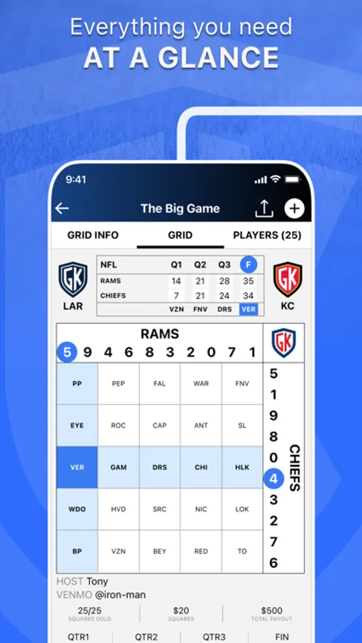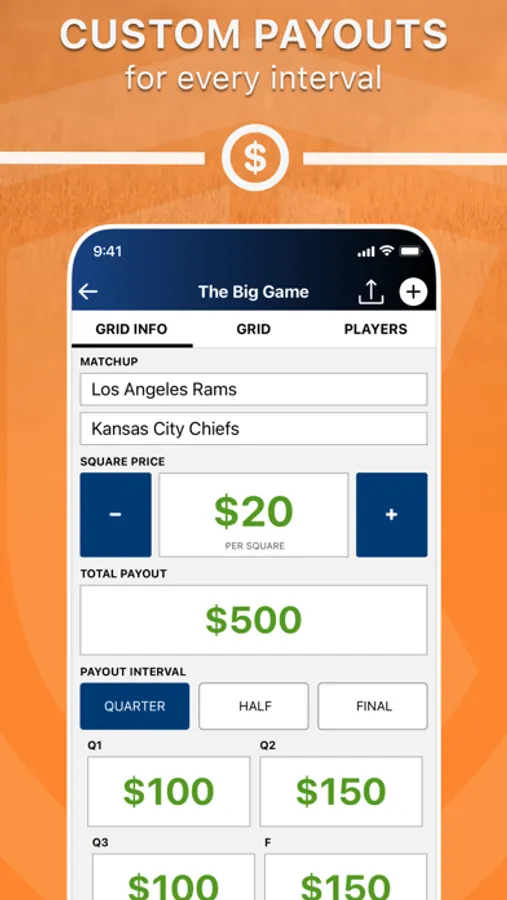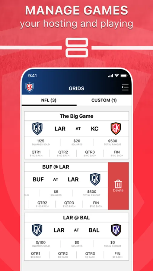 Grid Kings is an app for hosting sports pools based on the game of squares. If you've ever played a game of football squares or hosted a sports pool for anything, you already know how to use the app.