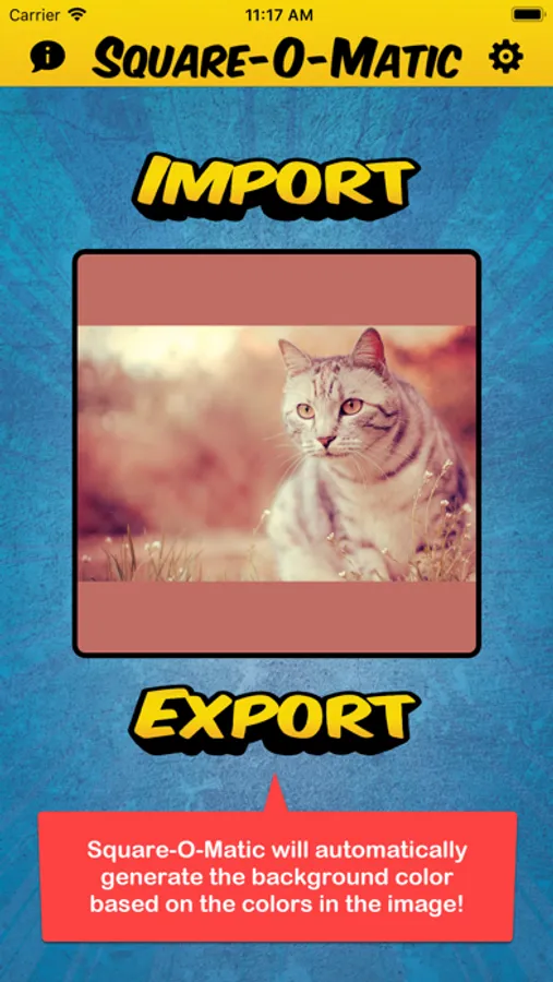 Square-O-Matic solves the problem of posting square images to social media sites such as Instagram. Square-O-Matic is ABSOLUTELY FREE and there are no hidden in-app purchases or watermarks! Just import your image and Square-O-Matic will use one of four advanced algorithms to calculate the best background color to fill in the open space automatically. You can then export a perfect square image to the camera roll to use in any app or post to you favorite social media site!