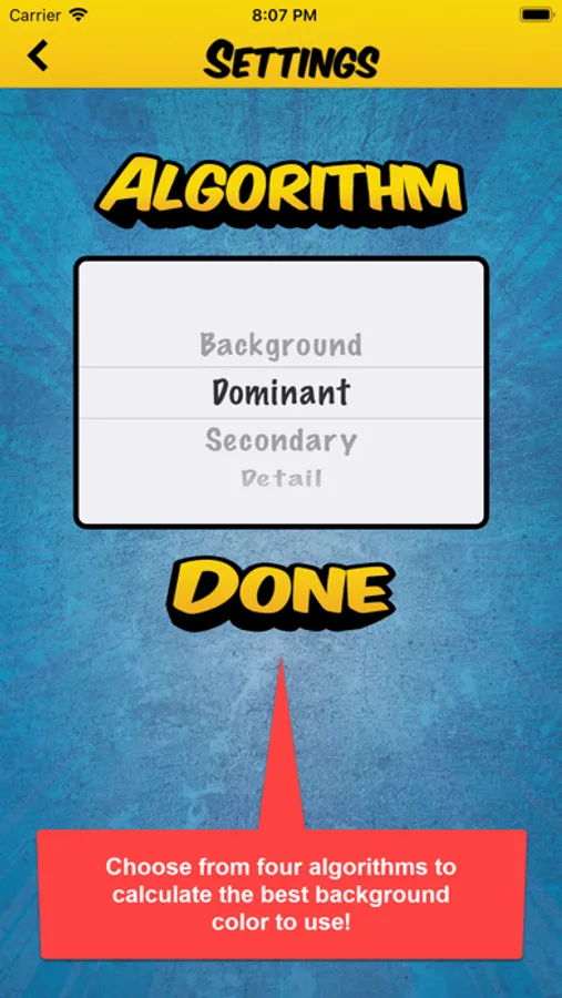 BACKGROUND - This will generate a color based on the dominant background colors of the image.