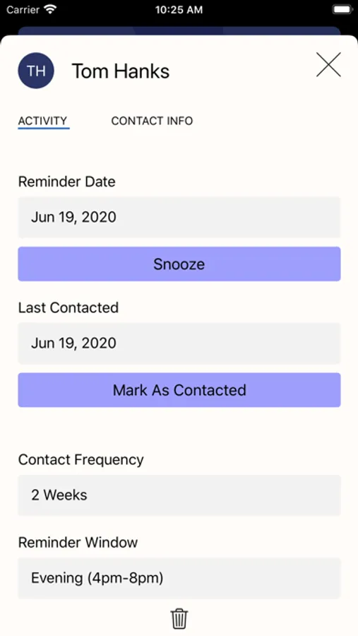 Did you reach out to your connection without the use of this app? Great! Mark them as contacted and we will remind you to reach out to them again when they are due for a contact.