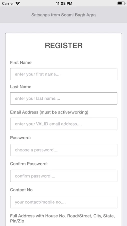 - If you are already registered on radhasoamisatsang.net website, no need to re-register from the app again.