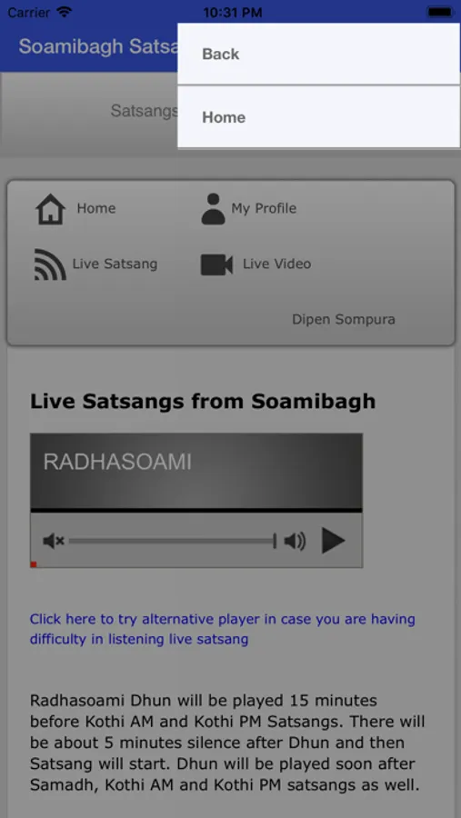 - The application is same as the website plus feature of notifications before daily Live Satsangs.