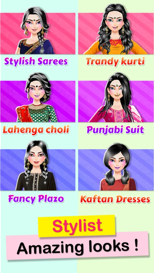 Start playing and earn tons of coins and get amazing fashionable style as you like a lot of collection. Fill up your closet with ethnic wear, stylish sarees, Trendy kurta, lehenga choli, punjabi suit, fancy plazo and kaftan dresses. Find out your style score, participate in this new fashion style events game and create breathtaking looks! Get voted and earn free coin to buy whatever new elements in a fashion salon game for free.