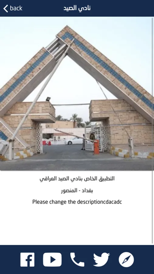 التطبيق الخاص بنادي الصيد العراقي الكائن في بغداد المنصور يحتوي التطبيق على كافة الصور و المعلومات الخاصة بالنادي وايضا يستقبل اشعارات لاخر العروض والمناسبات