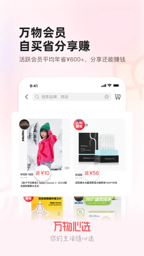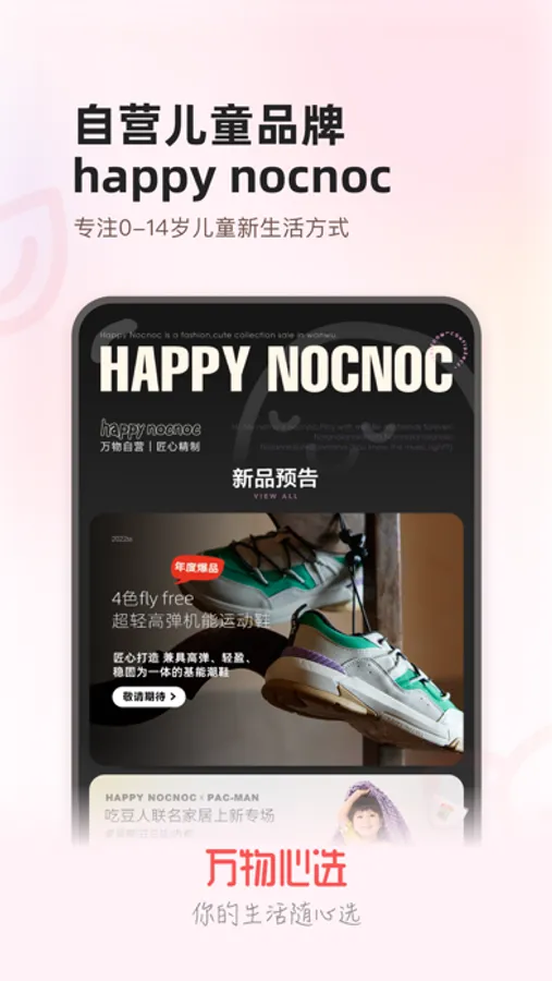 万物心选,是一家涵盖儿童服饰、玩具绘本、课程服务、亲子旅游到美食生鲜、时尚美容、家居生活...涵盖全场景、专注于服务90后新生代家庭的社交新电商平台。