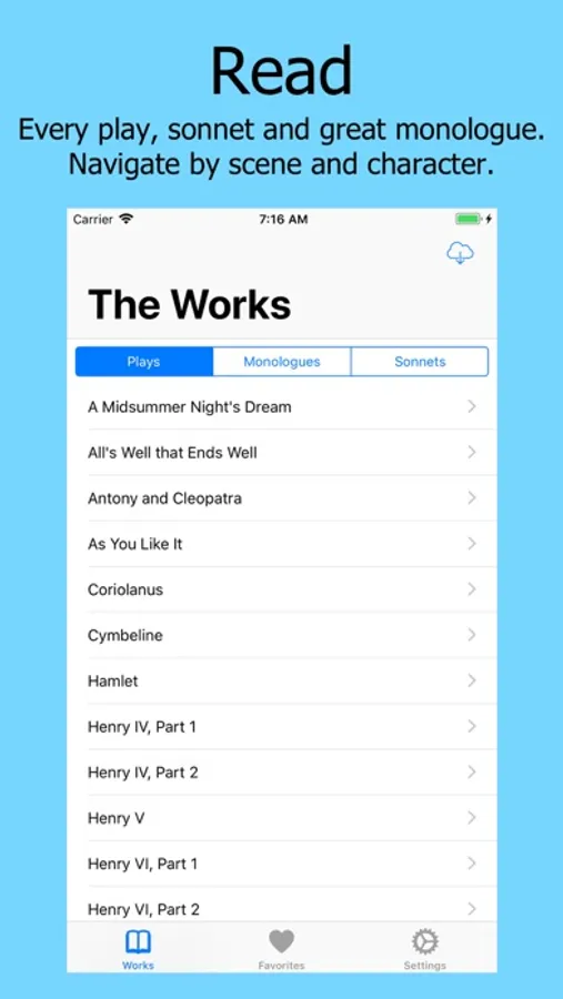 The app includes the full text of all Shakespeare’s plays and sonnets. No unlocking or downloading required. It’s all there from the start.
