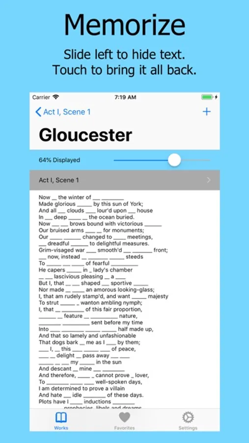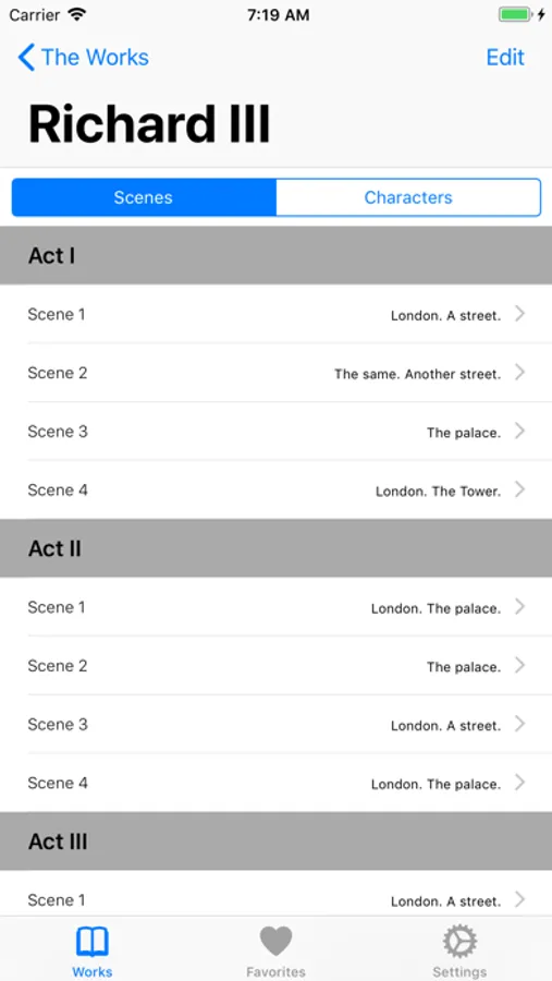 The app also comes with a collection of popular monologues to help you with audition preparation. Add a character, monologue, or sonnet to a collection of favorites so you can quickly navigate to your roles.