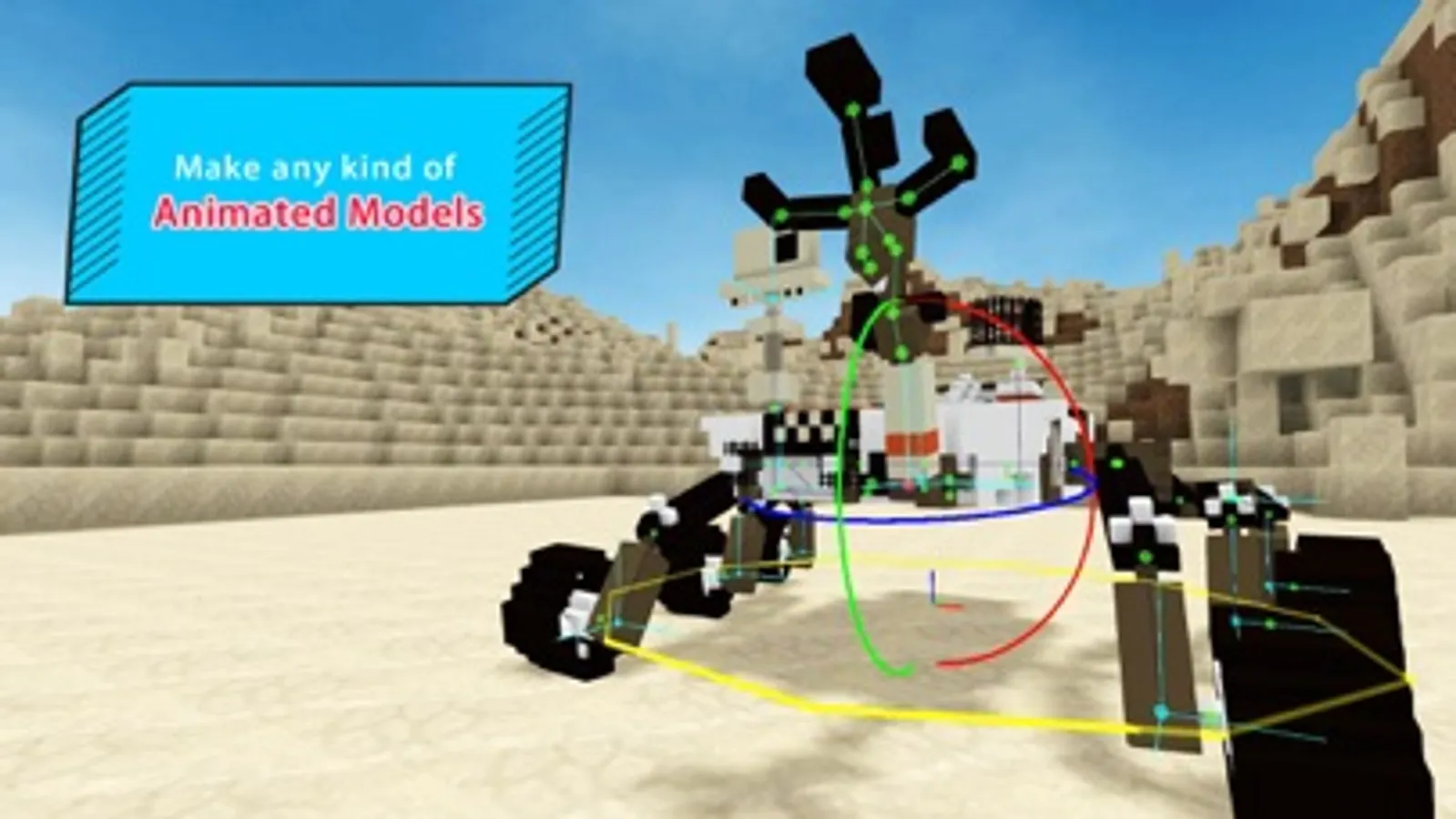 By defining joints with Bone Block, a set of blocks can be turned into a BMAX model. A BMAX model can be used as a normal block, or used as actors in a movie block.