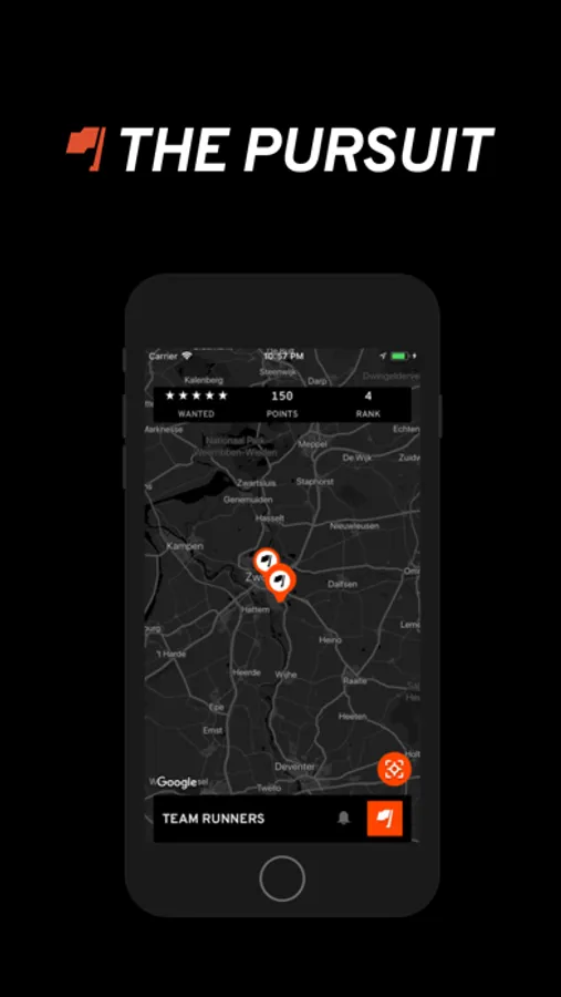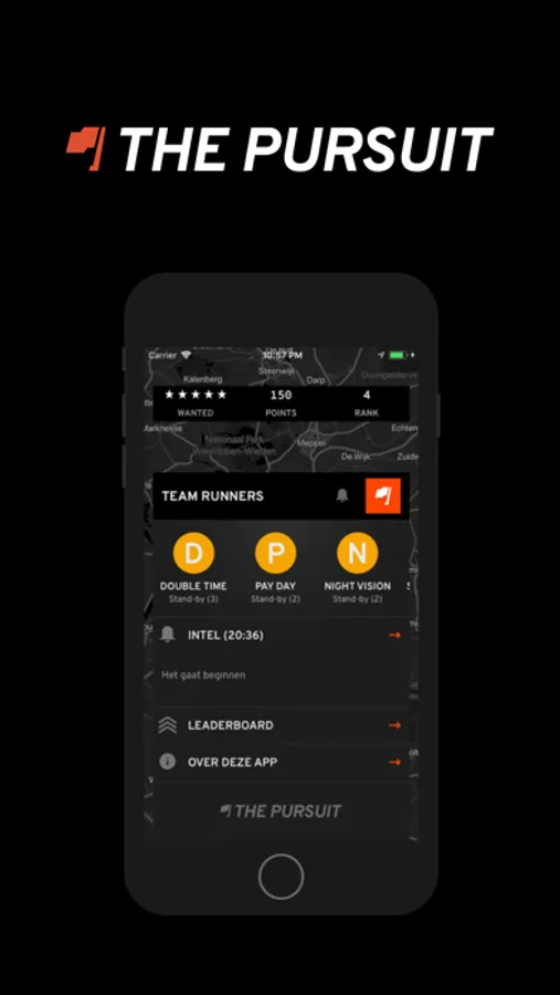 The Pursuit is meer dan een outdoorgame. Het is een high-tech outdoorgame. Runners en Chasers maken gebruik van een speciaal ontwikkelde app om het spel te spelen. Chasers krijgen hiermee hulp om Runners te vinden en Runners kunnen hiermee hun route bepalen. Maar er is meer: Bepaal je eigen strategie en help jezelf door power-ups slim in te zetten: stuur Chasers de verkeerde kant op, verdien punten over de rug van anderen of verkrijg meer inzicht in de locaties van de Runners, zodat je gerichter kan zoeken. Kortom: help jezelf en maak het je tegenstanders moeilijk.