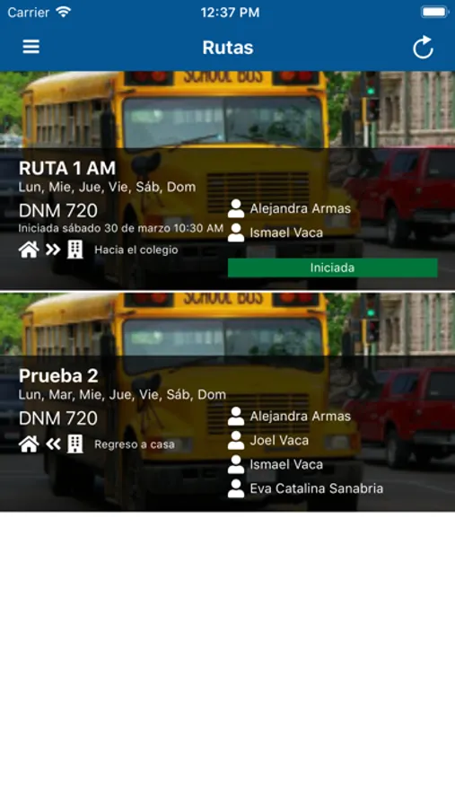 Realiza el seguimiento de las rutas escolares de tus hijos. Conoce en tiempo real su posición, tiempo estimado de llegada y el momento en que la ruta llega al colegio.