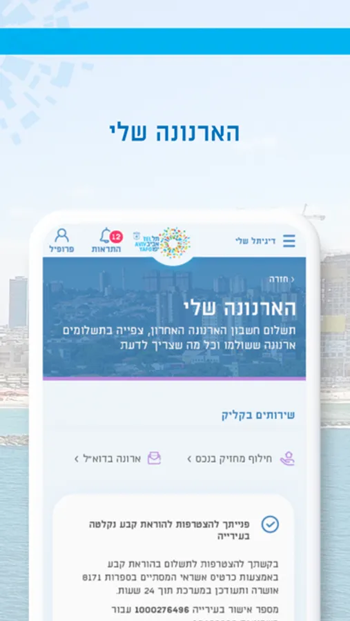 My digital - everything in one place. The gateway to all the information, benefits, events and services of the Municipality of Tel Aviv-Jaffa, customized for you personally.