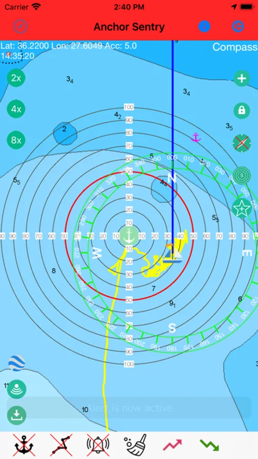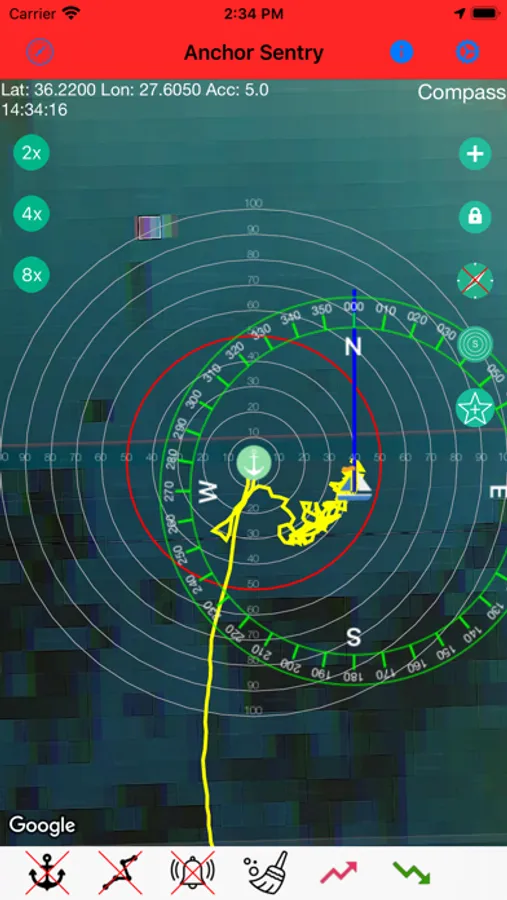 Anchor Sentry is an app to monitor the ship's position at anchor and inform the skipper when the anchor is dragging and thus the ship leaves the setup perimeter.