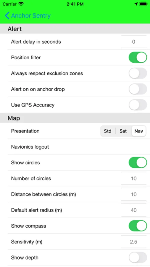 - Option to show current position visible to friends and family on the Anchor Sentry website
