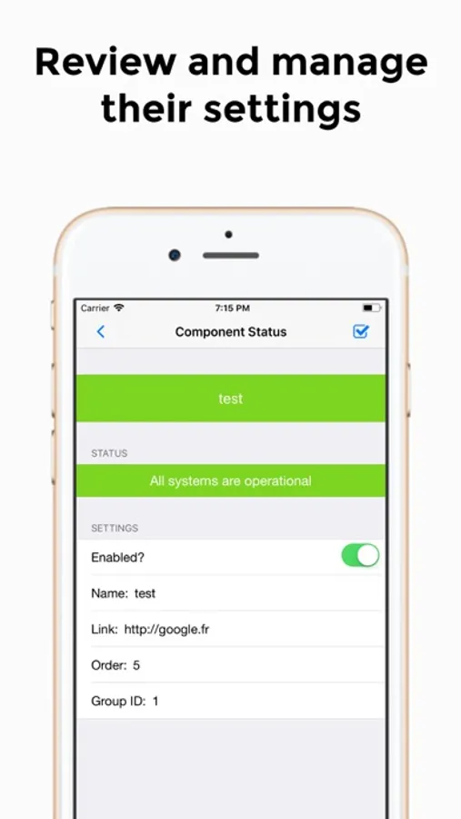 The "StatusCheck" app gives you the ability to manage your Cachet instance from your mobile device. The only thing you need is an active domain, and the latest version of Cachet (https://cachethq.io) running.