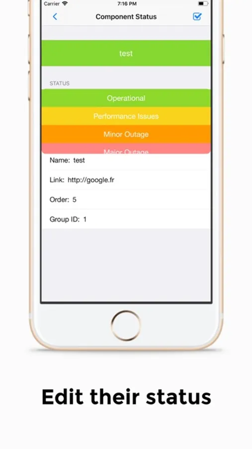 The app gives you control over all your components and allows you to edit variables such as the name, order, group, and status of the component.
