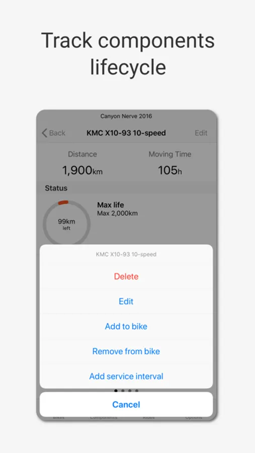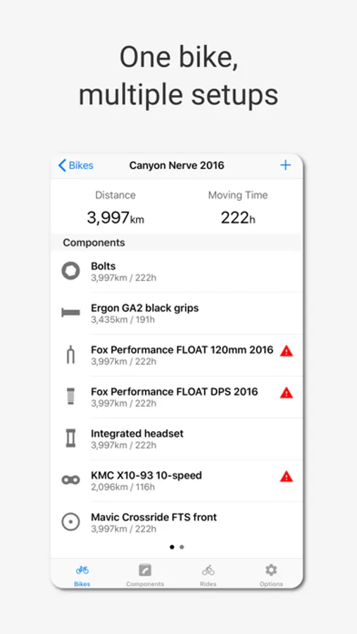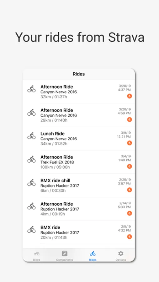 * Sync all your bikes and rides seamlessly from your Strava account to start monitoring your bike and parts' status.