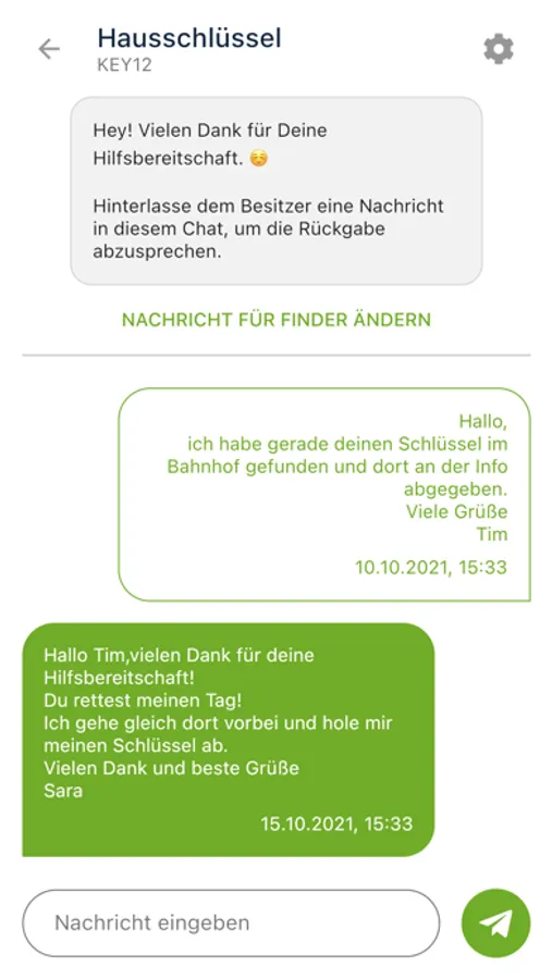 OLAF-App is an app that helps you to get back your lost items. The idea is that QR codes are attached to these items. If other people see the lost item, they can scan the QR code and discuss the return within an anonymous chat.