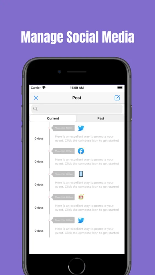 - Schedule marketing posts on Facebook, Twitter and much more.