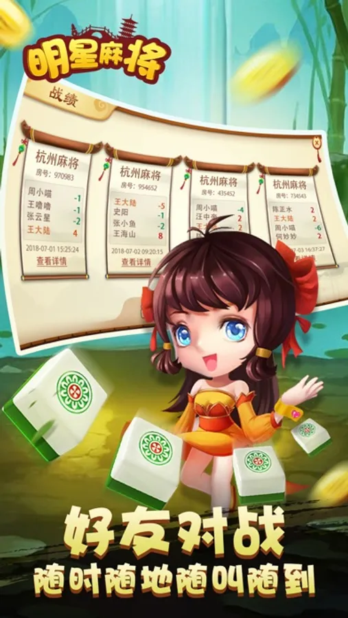 玩家实时对战,一键登陆,一秒开局轻轻松松打麻将斗地主。