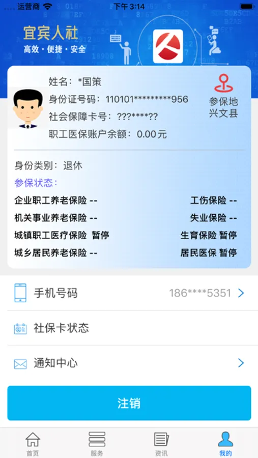 宜宾人社APP提供了参保信息、缴费信息、待遇信息以及政策法规等查询功能,并提供就业创业查询,社保待遇资格认证,电子社保卡申领、管理、认证登录,惠民惠农财政补贴一卡通发放查询,退役军人待遇资格认证等功能。