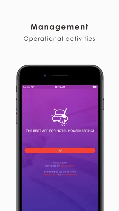 The app works as an extension of the ABS Hotel Management System. You must be a user of ABS Hotel Management System. Login and password is created by and provided from ABS Hotel Management System.