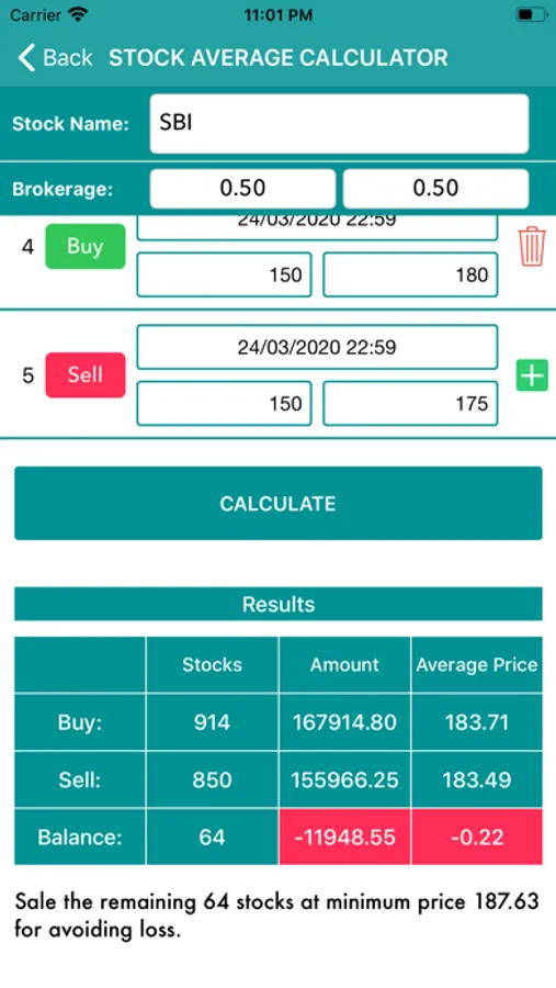 The stock average calculator application calculates the average cost of your stocks when you purchase the same stock multiple times. The average down calculator will give you the average cost for average down or average up. If you purchase the same stock multiple times, enter each transaction separately.