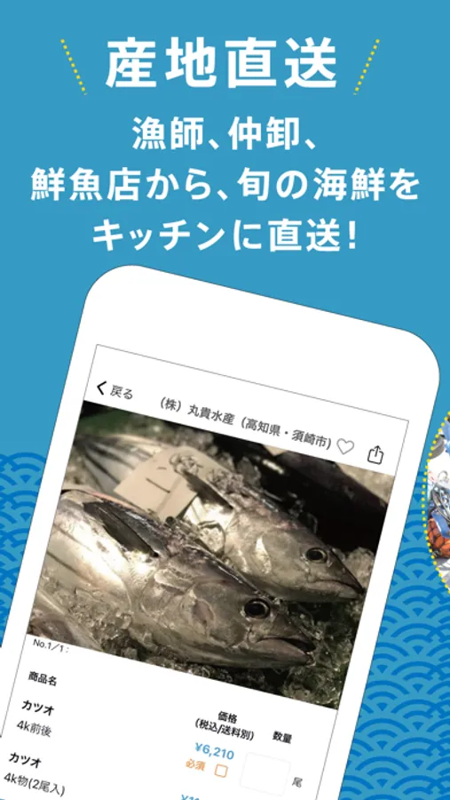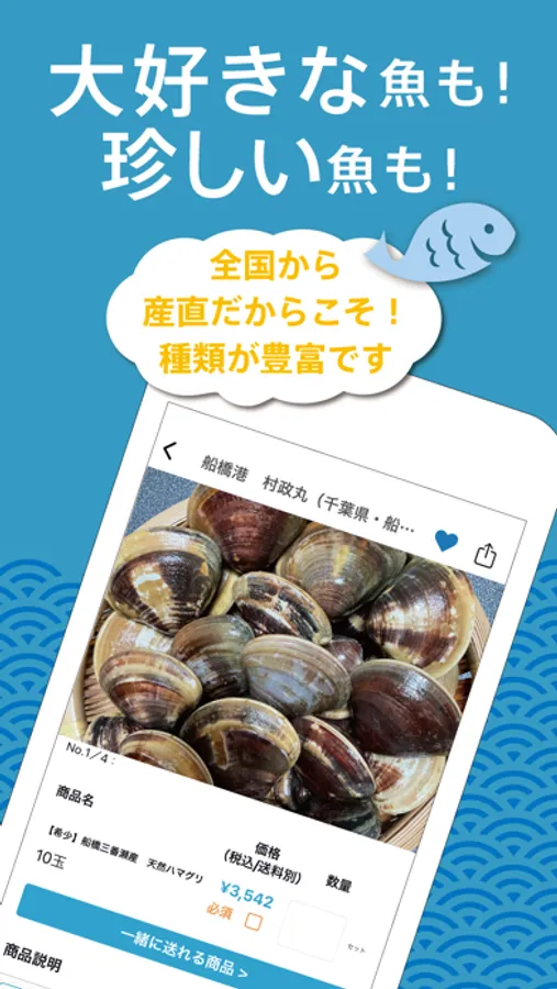 全国各地の漁港から直送の魚介は鮮度抜群!なかなか通常では手に入りづらい、産地でしか消費されないレアな鮮魚や貝などもスマホ一つであなたの家にお届け!今日水揚げされた魚が、最短で明日の午前中にはお手元に!