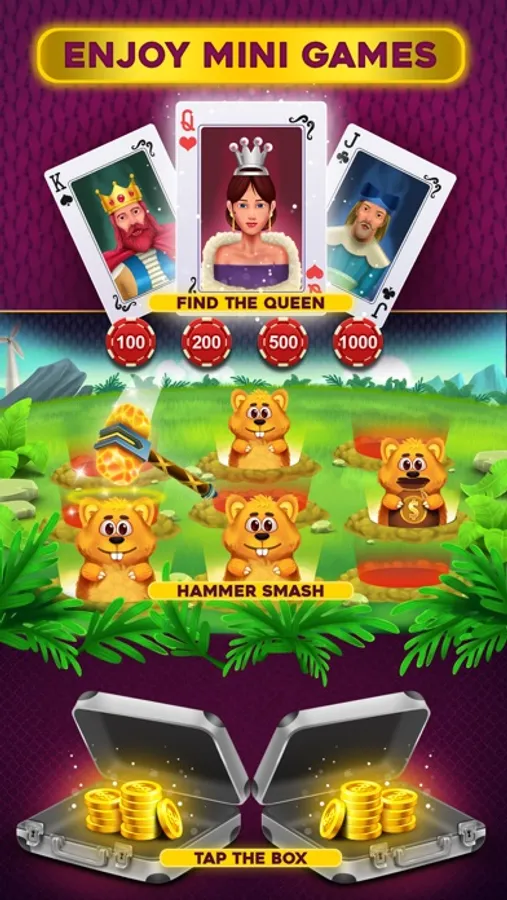 We have an awesome collection of slot machine themes to enhance your experience and an exciting array of Mini-Games which can be played to earn coins, awesome rewards, JACKPOT !!