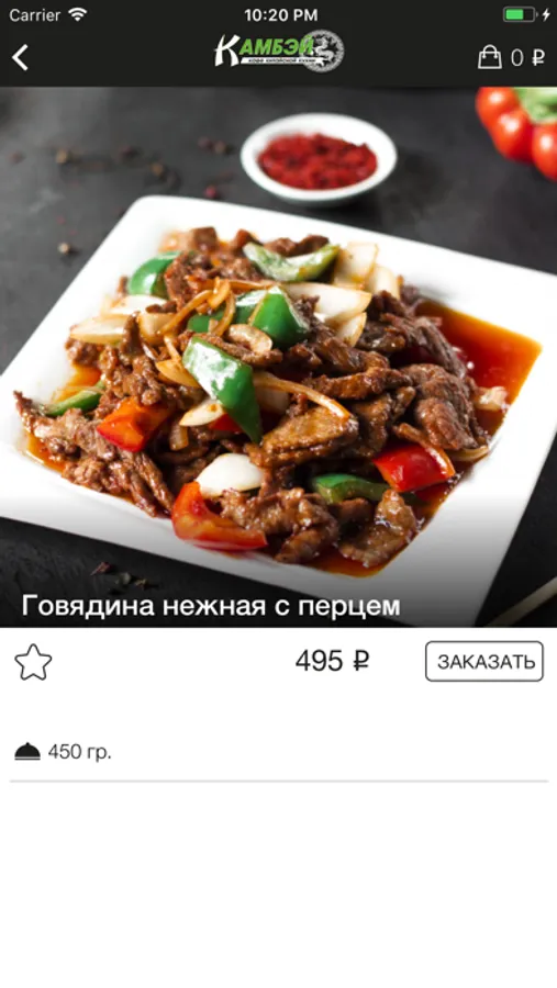 Приложение ресторана «Камбэй» позволяет оформить доставку заказа домой или в офис. С помощью данного приложения можно оформить заказ в 3 клика. Сохранить личную информацию, чтобы в дальнейшем не тратить время на повторный ее ввод в бланк заказа. Добавляйте любимые блюла в избранное и следите за историей своих заказов!