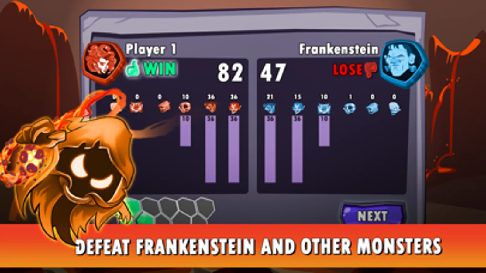 You must use both tactics and strategy to capture land in this easy-to-learn, but hard-to-master table top game. FILD Renegade Monsters is deceptively simple and may feel like tic-tac-toe or noughts and crosses at the beginning. You start with small boards that require only a few turns. But soon the board sizes increase. You often must think many turns in advance and sometimes must take a risk to conquer territories. Moreover, your AI opponents get stronger and you must use all the power of your brain to beat them on the boards.