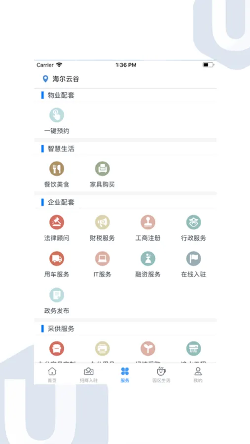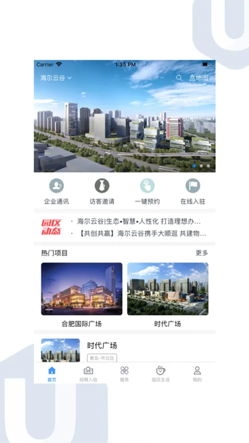 U-PARK将海尔地产旗下商业产业项目对外展示,提供企业从招商入驻到日常基础办公生活诉求的线上服务。打造智慧园区服务云平台,为园区用户提供智能化应用与服务,便捷选址办公,海尔地产致敬美好生活X.0。