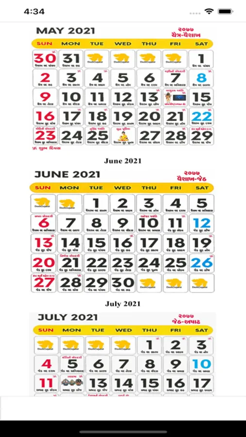 there are other features in this app to, you will find gujarati calendar in this app, so basically you will know gujarati rajao,holidays, festival holidays, ekadashi,poonam, etc month wise.