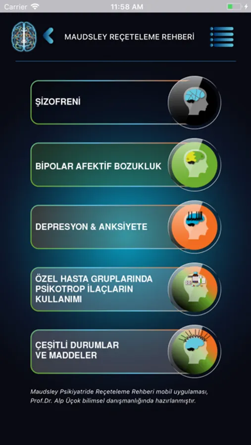 • ‘Maudsley Psikiyatride Reçeteleme Rehberi 12. Basım’ ın aplikasyona uyarlanmış kısımları