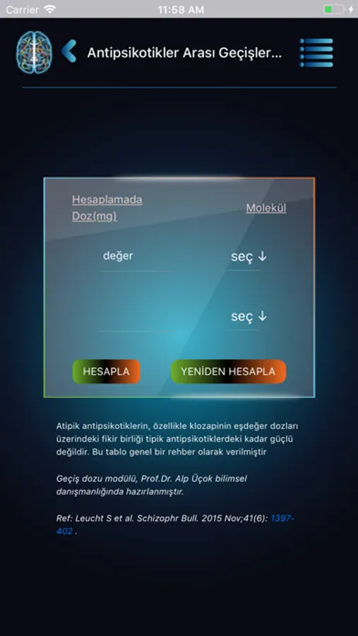 Maudsley Psikiyatride Reçeteleme Rehberi bölümleri ve antipsikotikler arası eşdeğer doz hesaplama kısımları Prof. Dr. Alp Üçok bilimsel danışmanlığında hazırlanmıştır.