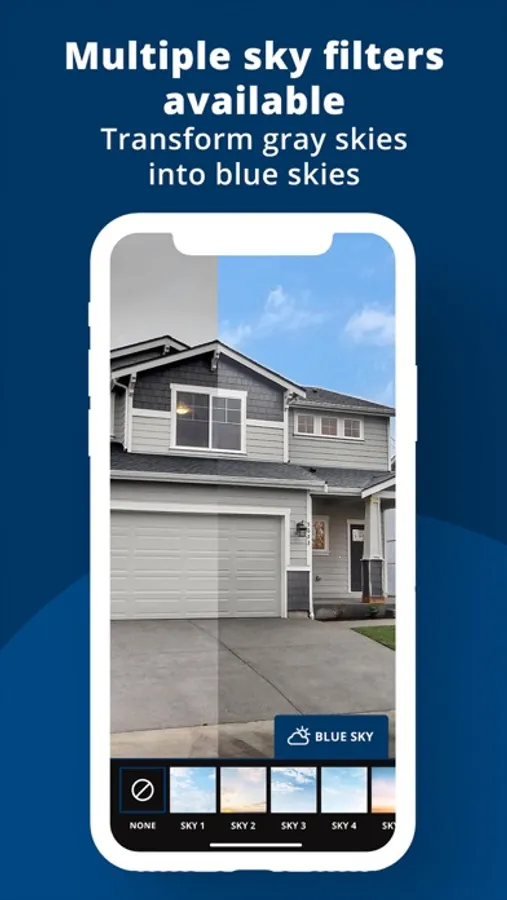 Shoot the outdoor of a property and use the Blue Sky feature that allows you to replace a gray sky with a beautiful blue sky. This process is done in a second, and gives you stunning results.
