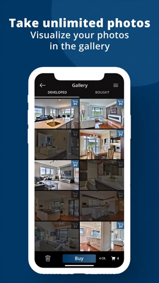 The App is free to download. Take as many photos as you want for free. Photos are marked with a watermark. In order to take off the watermarks, save and use the HDR pictures you will need to purchase photos individually or in bulk. Buy only the HDR photos you want. 1 HDR picture starts at $0.99. Lower price packages available to purchase.
