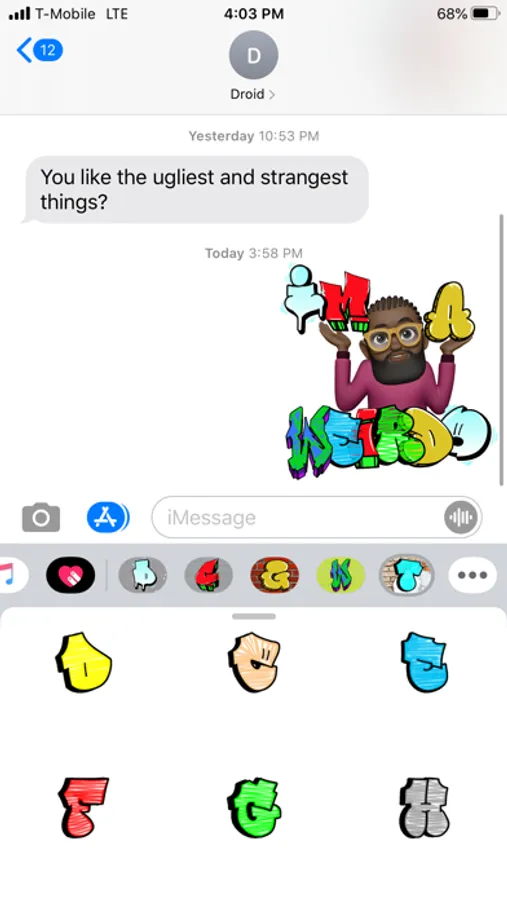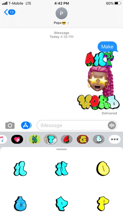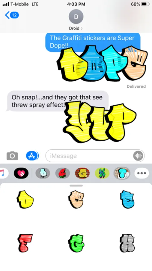 THESE GRAFFITI TAG UP SPRAY PAINTED ABC LETTERS, NUMBERS & CHARACTERS ARE STICKERS THAT CAN BE USED IN iMESSENGER TO MAKE ANY WORD, TITLE YOUR IMAGES OR TO ADD GRAFFITI STYLE TO YOUR MEMOJI.