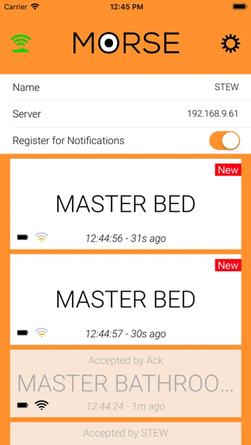Lists calls and allows acknowledgement of calls from App which changes LED ring colour